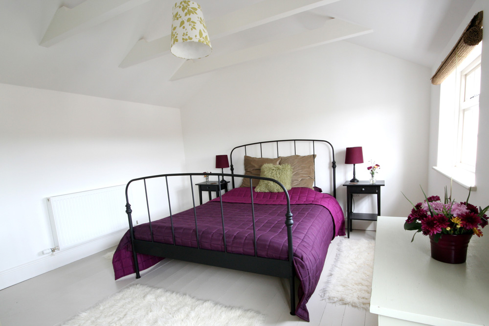 The master bedroom is large, spacious and bright, with painted floors, deep wool rugs, a king size romantic bed, and period furniture to give a feel of luxury and tranquility.