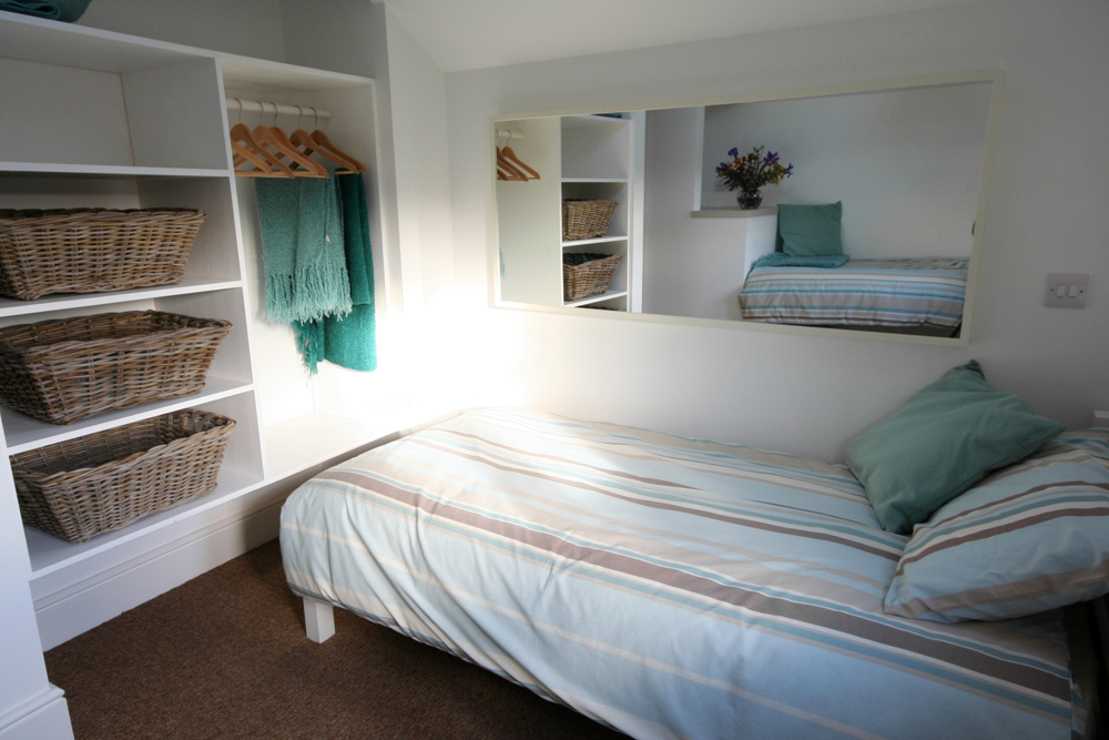 The second bedroom has two full size single beds (one cabin style), open wardrobe with plenty of storage and hanging space and far reaching views across Lostwithiel.